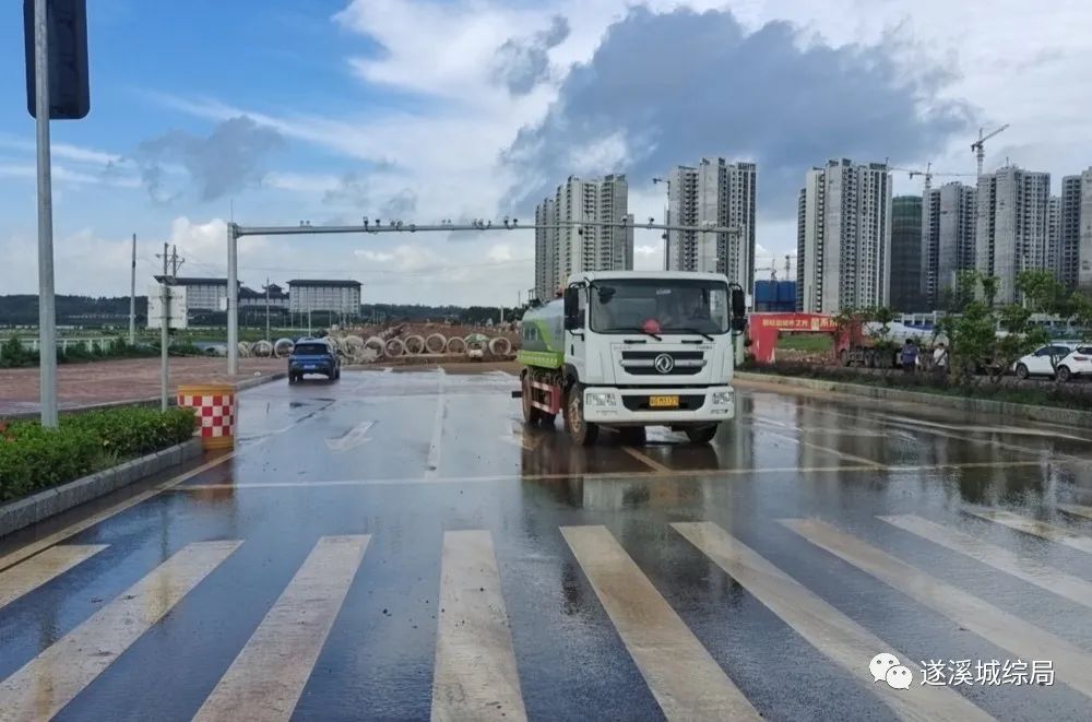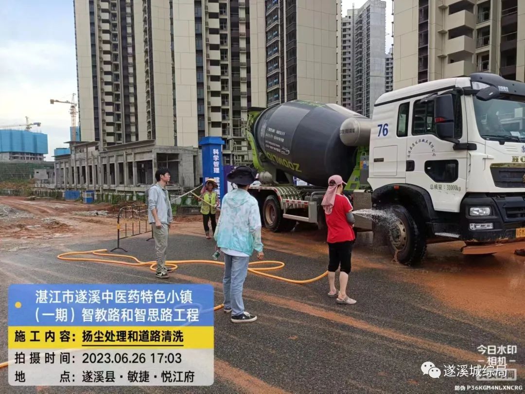 为打好遂溪县污染防治攻坚战,做好扬尘及道路污染治理工作, 6月26日来,遂溪县城综局组织人员对遂溪大道(河东大道至睿智路段) 进行路面冲洗,同时加强遂溪大道两侧多个施工工地渣土运输车辆清洗工作,确保遂溪大道干净、整洁、畅通。