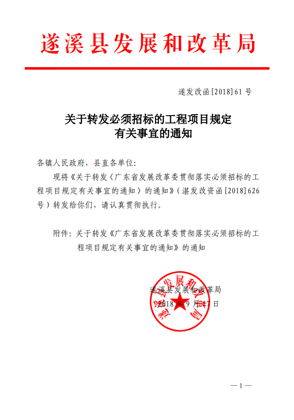 附件1:关于转发《广东省发展改革委贯彻落实<必须招标的工程项目规定>有关事宜的通知》的通知