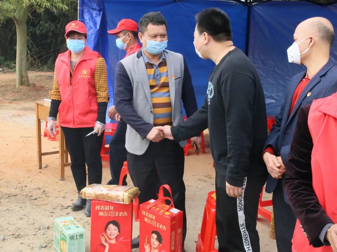 当天,恰逢乡贤林福明亲自驱车送来5000个医用防护手套,县镇领导为其雪中送炭点赞。镇委书记陈光提当即指示:立即分配发放到辖区医院、各检查卡口,切实做到全镇一盘棋,统筹调配。