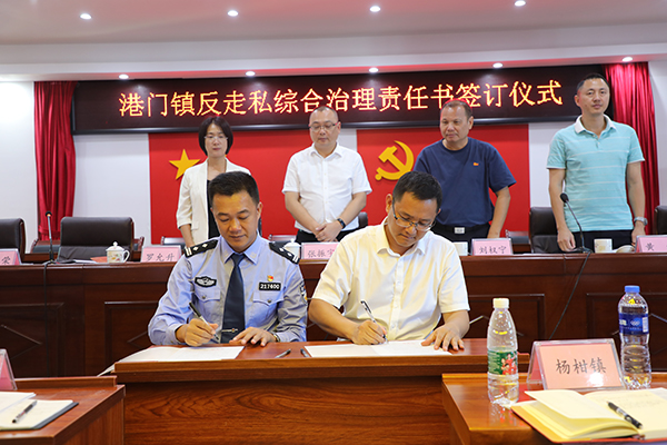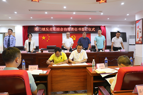 会上,县打击走私领导小组副组长、县公安局副局长官子清代表县打击走私领导小组与港门镇党委书记罗允升签订打击走私重点地区整治责任书;港门镇党委书记罗允升与各重点村委会书记签订责任书。