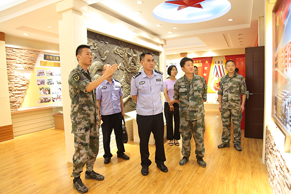 7月10日下午,副县长、公安局长梁虎泉率队到县人武部和边防大队调研,强调要坚持以习近平新时代中国特色社会主义思想为指导,增强“四个意识”、坚定“四个自信”、做到“两个维护”,牢记初心使命、忠诚履职尽责,以优异成绩向新中国70周年华诞献礼。县府办副主任许华荣,县局党委委员、副局长韩志华,县局党委委员、政工室主任司徒平陪同调研。