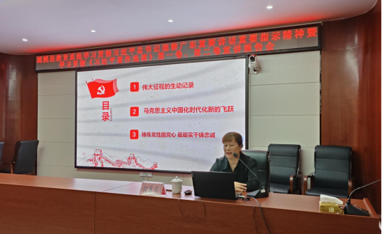 遂溪县委教育工委邀请了遂溪县委党校教研室主任、资深讲师、遂溪县理论宣讲团团长何翠芹同志作宣讲。何翠芹同志以《用党的创新理论汇聚民族复兴的磅礴力量》为主题,从三个维度系统、全面地介绍了《习近平著作选读》第一卷、第二卷的主要内容,深刻剖析了习近平新时代中国特色社会主义思想的重大意义,就如何研读《习近平著作选读》第一卷、第二卷问题分享了其独特的见解,以“锤炼党性固党心 砥砺实干铸忠诚”的论点作结,引导在场的党员干部感受思想伟力,以学铸魂,以学增智,以学正风,以学促干。