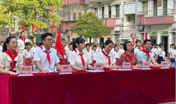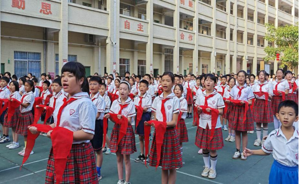 为深入贯彻落实习近平总书记关于少年儿童和少先队工作的重要论述,认真落实《中共中央关于全面加强新时代少先队工作的意见》精神,教育引导广大少先队员听党话、跟党走,10月12日上午,团县委、县教育局、县少工委联合,在遂城第一小学举行“红领巾爱祖国 争做新时代好队员”2024年遂溪县纪念中国少年先锋队建队75周年暨第二批新队员入队仪式活动,该校200多名学生光荣加入中国少年先锋队。