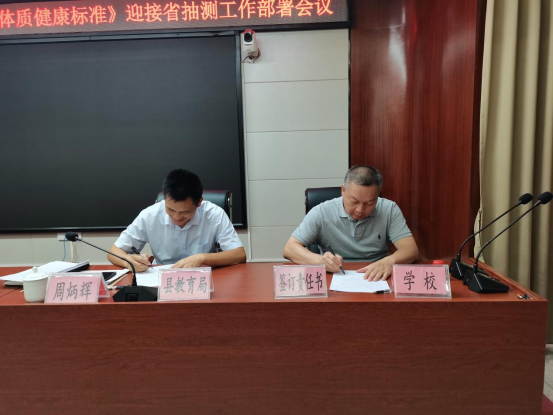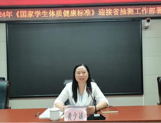 最后,县政府黄少娥副县长强调:一要强化责任担当,明确工作目标;二要强化项目训练,提升整体水平;三要落实问责机制,增强执行力;四要加强督查指导,确保抽测达标。同时要求县教育局树立全县一盘棋意识,动员全县学校体育工作力量,形成工作合力,齐抓共管,做好训练、测试服务保障工作;要定期开展督导检查,严格把关、及时反馈,发现问题要立即组织整改,确保抽测准备工作高标准高质量完成。