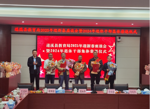 祥龙辞旧,金蛇迎新。1月23日上午,遂溪县教育局召开2025年迎新春座谈会暨2024年退休干部集体荣退仪式。县教育局党组成员和2024年退休干部代表、局机关全体干部欢聚一堂,共庆新春佳节、共叙教育情谊、共商发展大计。
