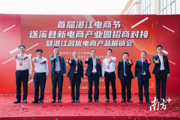 11月19日上午,由湛江市商务局、遂溪县科工贸和信息化局指导,遂溪县电子商务行业协会主办,广东一人一亩田网络科技有限公司、湛江名邦商贸物流园有限公司、湛江市遂荣供应链管理有限公司、广东福东海药业有限公司联合承办的首届湛江电商节遂溪县新电商产业园招商对接暨湛江名优电商产品展销会在遂溪县白坭坡名邦商贸物流城隆重举行。