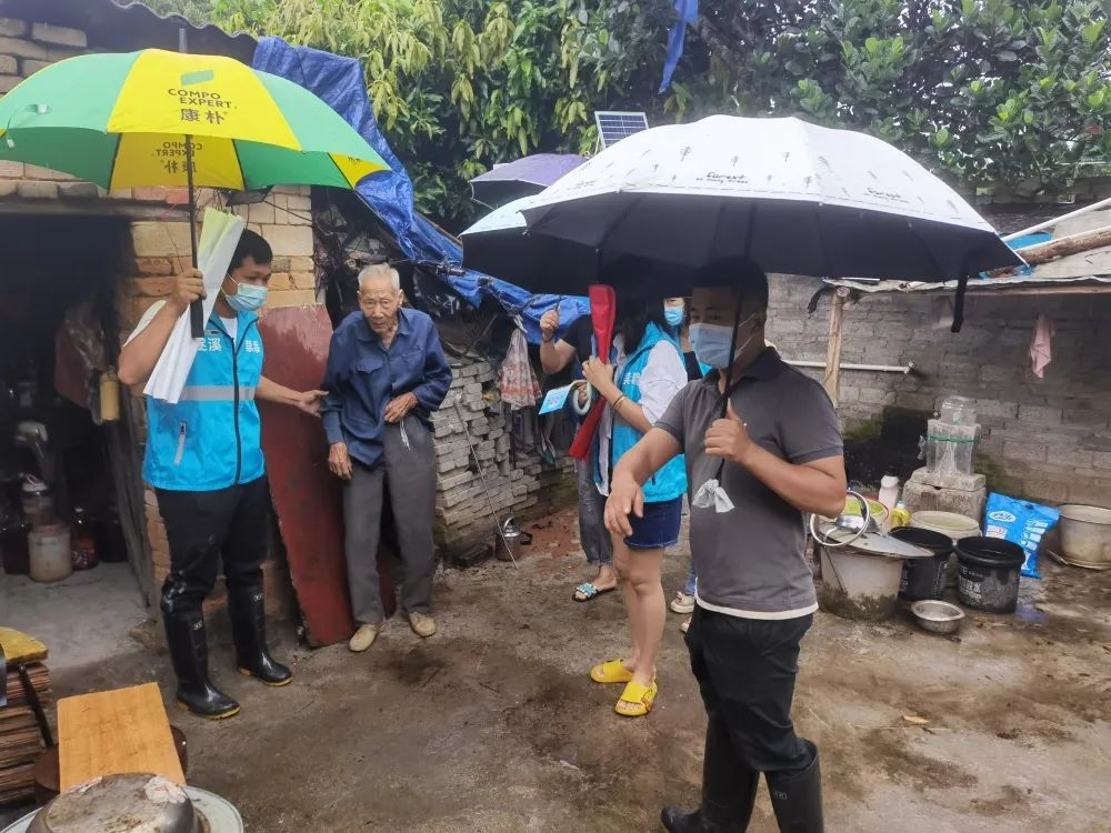 在排查五保户等独居老人房屋安全、用电用气安全时候,对在老旧危房居住的老人进行劝导,要求暂时离开投奔到亲友家居住。由于有几个老人年事已高,腿脚不便,且已开始下雨,于是工作人员搀扶老人出屋,安置到附近其亲属家中,并叮嘱亲属细心照顾好老人。
