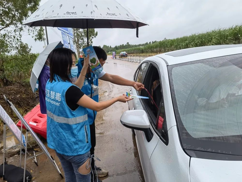 活动中,为加强疫情期间毒品预防宣传教育,提高群众禁毒知识知晓率,将禁毒工作与疫情防控工作进一步延伸,禁毒工作人员向过往的司机群众分发禁毒宣传小册子,并耐心地为他们讲解毒品的危害,告诫他们远离毒品,谨慎交友,要学会分辨新型毒品;在疫情期间也要做好个人防护,不乱跑、不乱窜。