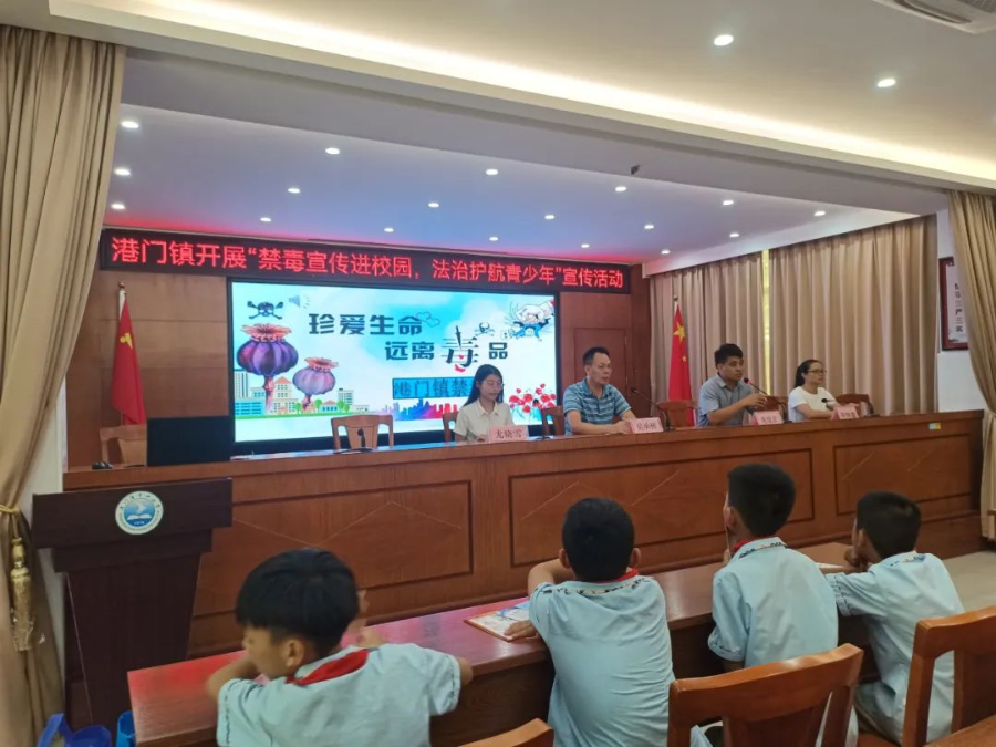 为进一步加大校园禁毒预防宣传教育工作力度,增强广大学生抵制毒品的意识,提高自我保护能力和法律素养,按照湛江市禁毒办关于开展“开学第一课”禁毒预防教育宣传部署,9月7日,遂溪县港门镇禁毒办联合港门镇司法所、港门妇联到港门中心小学开展“禁毒宣传进校园 法治护航青少年”宣传活动。港门镇党委副书记吴承树、司法所所长庞战武、粤海律师事务所尤晓雪参与此次活动。