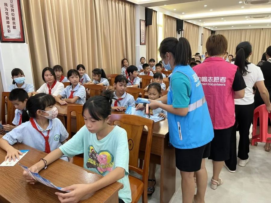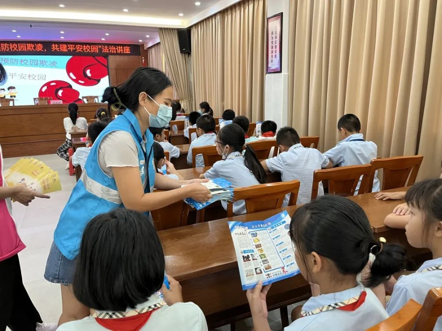 活动中,通过向学生发放《珍爱生命,远离毒品》、《未成年人保护法》、《平安家庭知识要点》等法制宣传手册,并邀请粤海律师事务所律师尤晓雪为学生普及禁毒及法治安全教育知识。