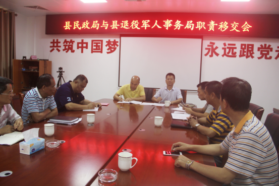 2019年4月19日(星期五)在遂溪县民政局二楼会议室进行了我局与退役军人事务局的职责移交仪式,至此我局的优抚安置股(县双拥工作领导小组办公室)职责已划入县退役军人事务局。