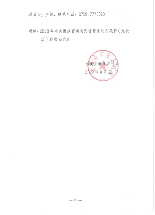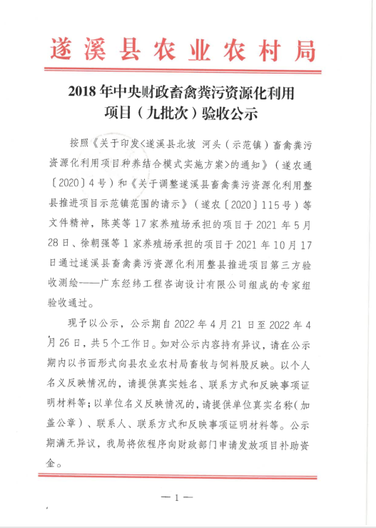 2018年中央财政畜禽粪污资源化利用项目(九批次)验收公示