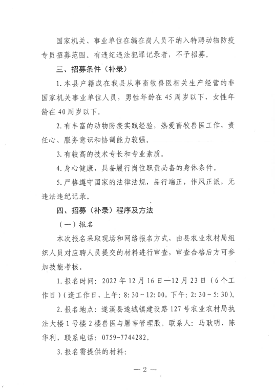 遂溪县农业农村局公开招募特聘动物防疫专员(补录)的通告