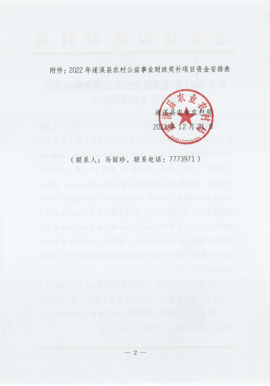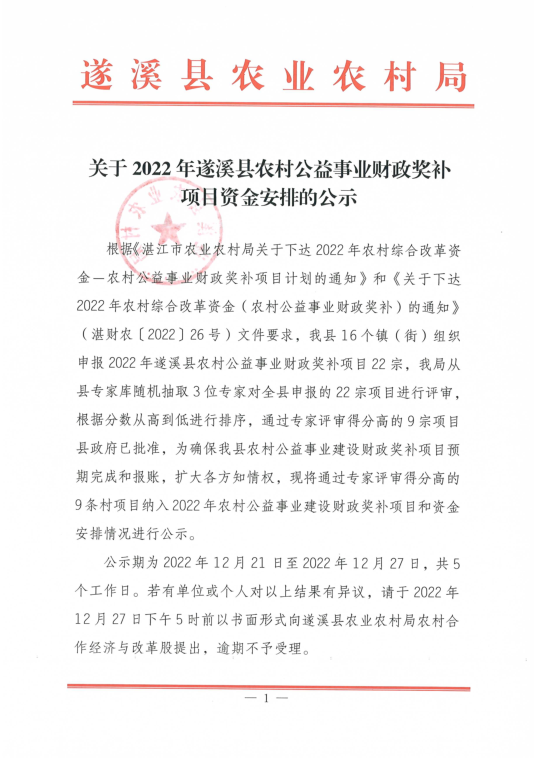 关于2022年遂溪县农村公益事业财政奖补项目资金安排的公示