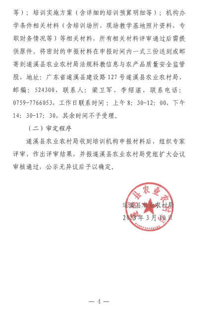 关于遴选遂溪县2022年基层农技推广体系改革与建设补助项目基层农技人员能力提升培训机构的通告