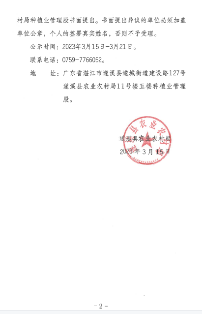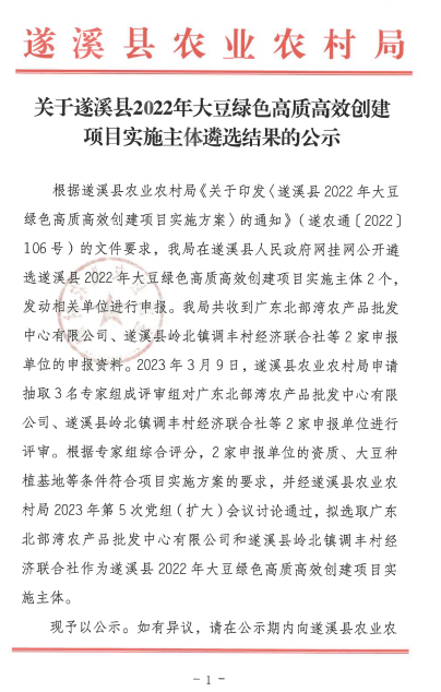 关于遂溪县2022年大豆绿色高质高效创建项目实施主体遴选结果的公示