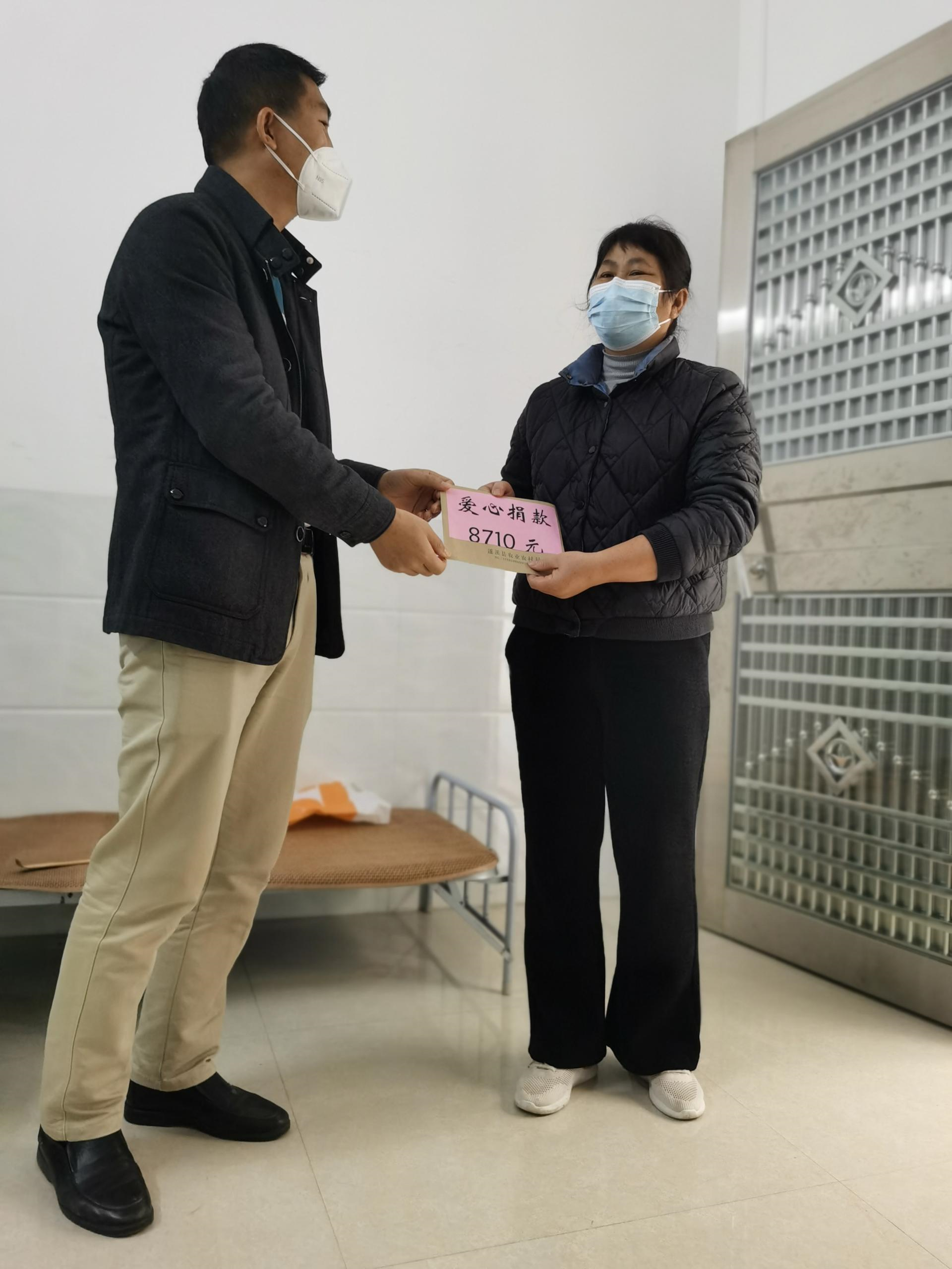 1月19日,县委农办专职副主任尤志勤代表我局慰问患病生活困难职工并送上慰问金。