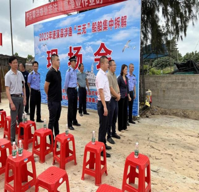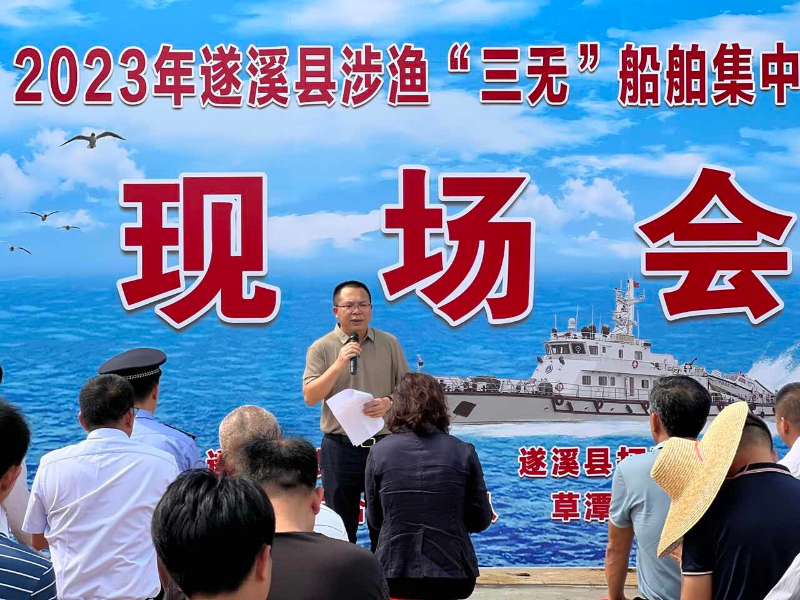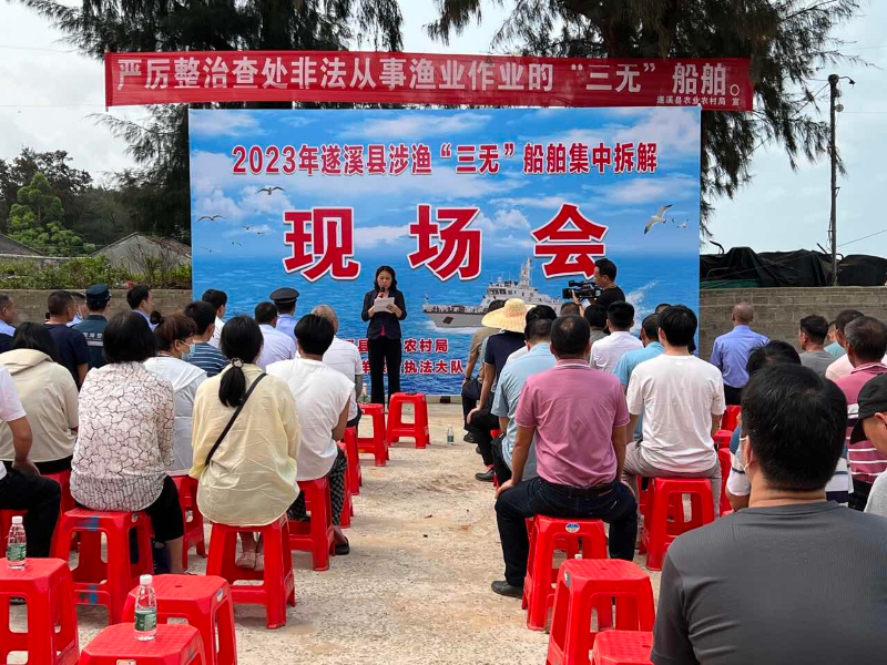 为认真做好涉渔“三无”船舶安全生产工作,全力保障我县渔业安全生产稳定形势,切实维护人民群众生命财产安全。4月24日,2023年遂溪县涉渔“三无”船舶集中拆解现场会在草谭镇召开,县农业农村局局长陈连虹主持会议,县委常委、副县长庞宇在会上作强调讲话。