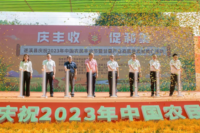 9月22日上午,遂溪县庆祝2023年中国农民丰收节暨甘薯产业高质量发展推介活动在广东北部湾农旅产业园隆重举行。活动以“庆丰收 促和美”为主题,共享丰收喜悦、共赏乡村美景、共尝农特产品、共品农耕文化,助力建设农业强县,全面推进“百县千镇万村高质量发展工程”。