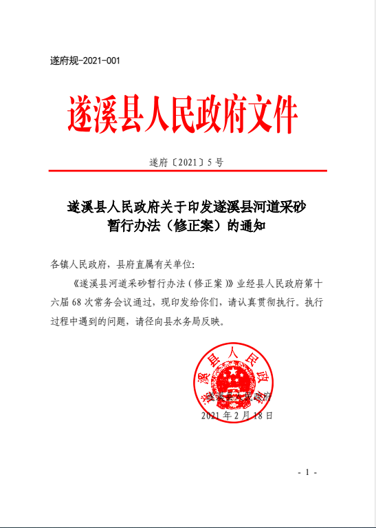 关于印发遂溪县河道采砂暂行办法(修正案)的通知