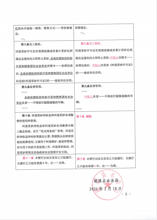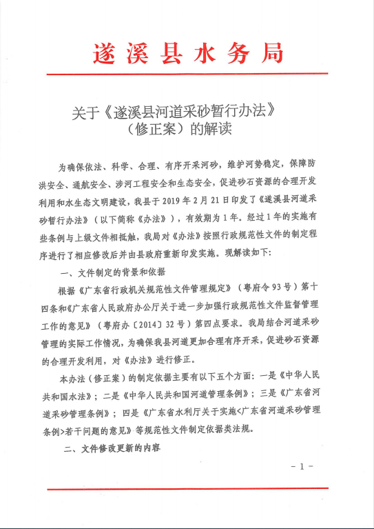 关于遂溪县河道采砂暂行办法(修正案)的解读