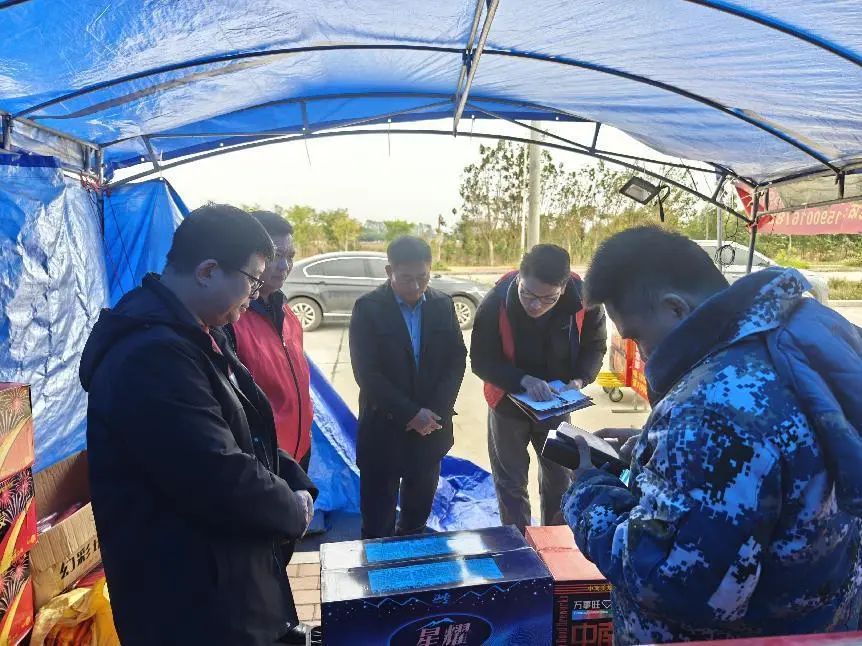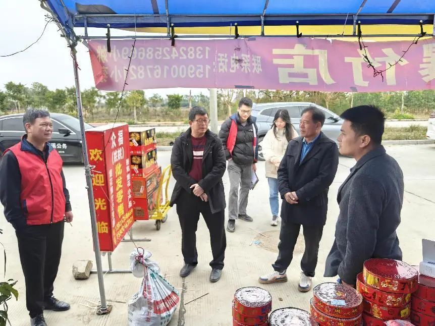 陈日胜一行在杨柑镇党委书记蒋养的陪同下,来到杨柑镇烟花爆竹春联花市,先后走入遂溪县杨柑陈锋烟花爆竹店、陈君烟花爆竹店、姚才英烟花爆竹店、锋哥烟花爆竹零售店等商铺,按照“五经普”要求,认真与商铺经营者进行交谈,详细询问烟花爆竹春联年花等经营销售状况,并对标对表查看核实个体户收支账单、进货对账单等凭证资料。
