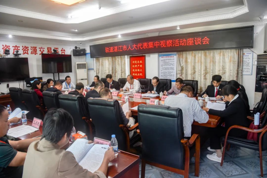 代表们先后实地察看杨柑镇“百千万工程”典型镇推进情况、湛江富洋水产有限公司海洋牧场深水网箱金鲳鱼养殖收获实况、遂溪新海茂水产种业科技有限公司对虾种业发展情况。现场视察结束后,代表们召开座谈会,就杨柑镇“百千万工程”工作推进情况、海洋牧场、养殖种业等工作进行交流探讨。