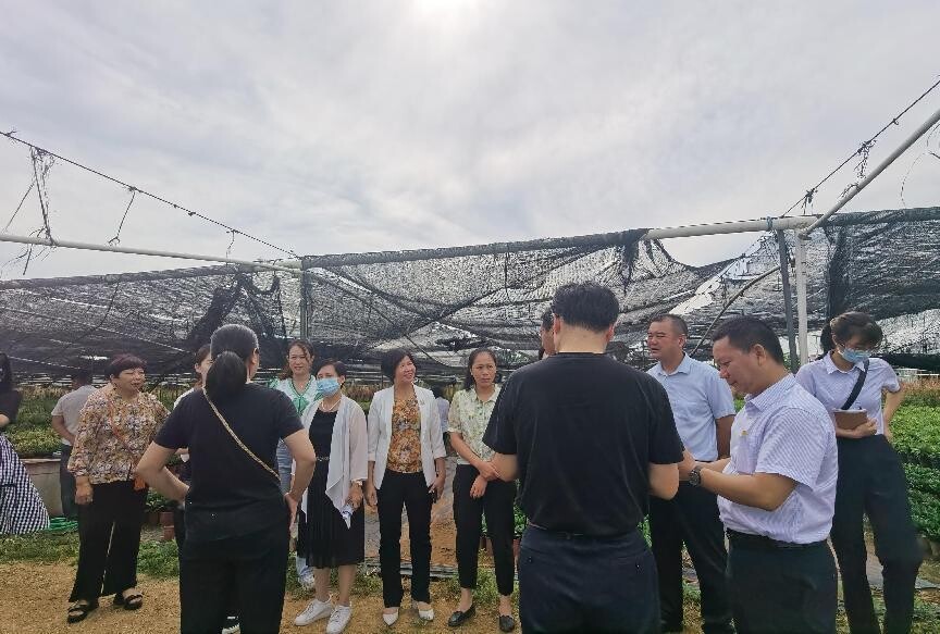 省第三方绩效评价小组冯秋艳、张小青专家一行5人,在省妇联妇女发展部一级调研员李映雪,湛江市妇联副主席吴茵,县妇联党组书记、主席王月美,乌塘镇陈燕清等领导陪同下,先到我县乌塘镇明月家庭农场实地调查评价贷款大户黄彩平的种植基地,评价小组对其贷款基本情况、项目成效、社会效益等进行详细询问。