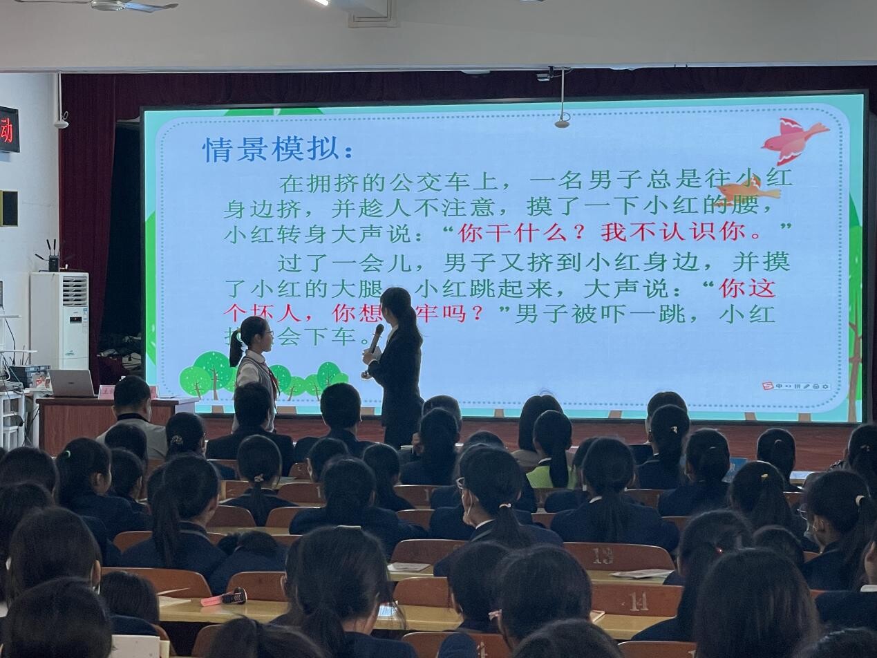 为加大预防性侵知识宣传力度,切实提高未成年人自我保护意识和能力,促进未成年人健康茁壮成长,327日上午,遂溪县妇联联合县检察院、县教育局、县法院、县公安局、县司法局、县关工委、团县委、县民政局、县残联、广东省妇女维权与信息服务站(遂溪站)等单位在遂城第四小学开展“守护童年 牵手共成长”——“关爱女童 预防性侵”主题宣传教育活动,遂溪县妇儿工委副主任、县妇联党组书记、主席王月美出席活动并讲话,县妇儿工委有关成员单位分管领导、遂城四小300多名女学生及教师参加现场活动。活动以线上直播形式开至全县各小学、村(社区)家长学校。