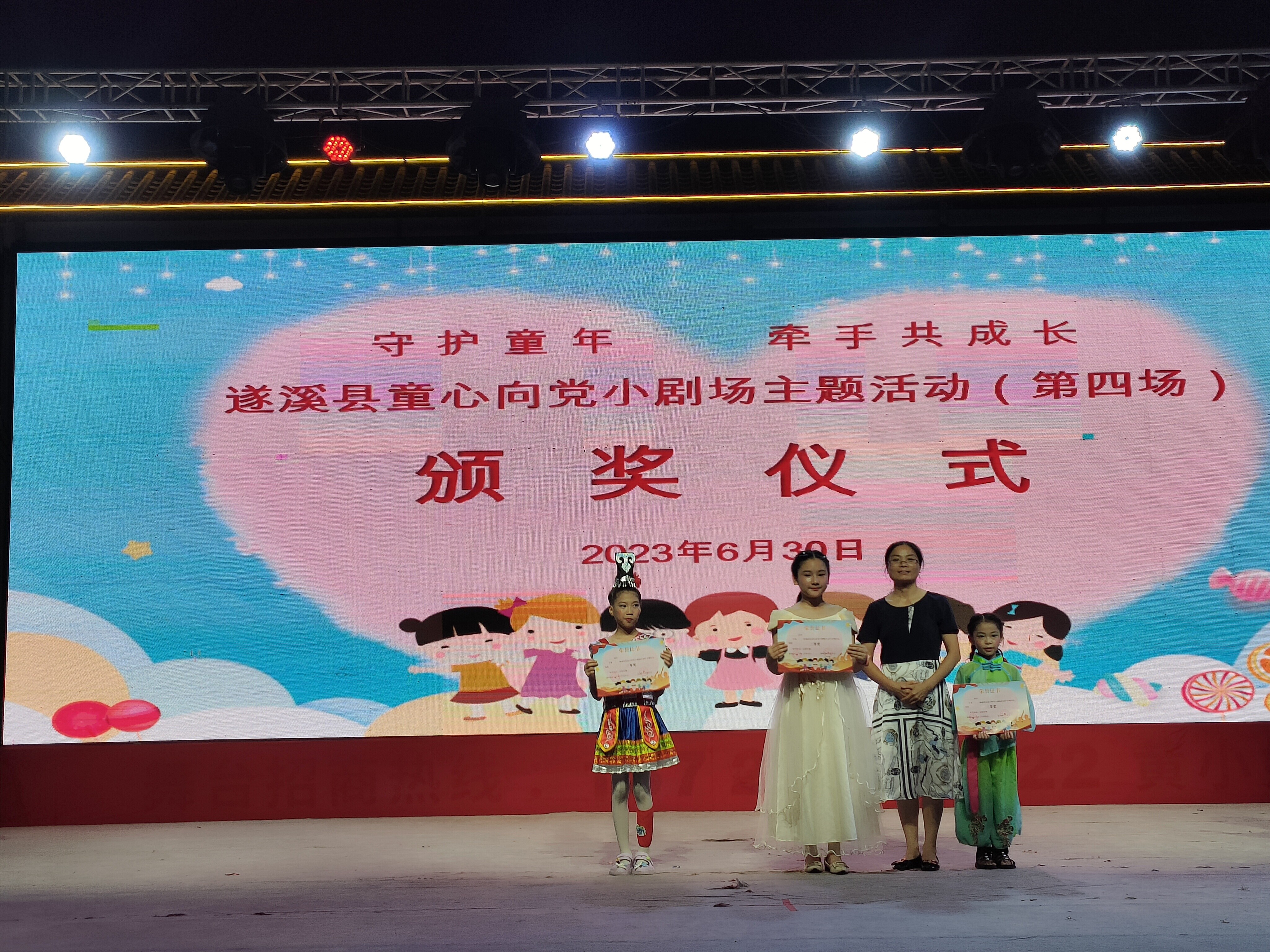 经过激烈角逐最终产生一等奖1名、二等奖2名、三等奖3名、最佳创意奖1名、最佳风采奖1名、优秀节目奖若干名蔡嘉欣表演的独舞《红棉红》获得了一等奖,也是遂溪县童心向党小剧场第个“小小剧场王”获得者;《阿达毕的心声》《飞天乐鼓》获得二等奖;《消防英雄》《我喜欢红色》《还能孩子多久》《老鼠吃辣椒》获得三等奖;长城幼儿园大大B班表演的情景剧《老鼠吃辣椒》荣获最佳创意奖,莫思琪、陈韵茹等等人表演的《铃哟灵》荣获最佳风采奖。来自遂溪县大成中学的劳承印老师对参演节目进行了点评,参加活动的领导为获奖选手颁发了荣誉证书。