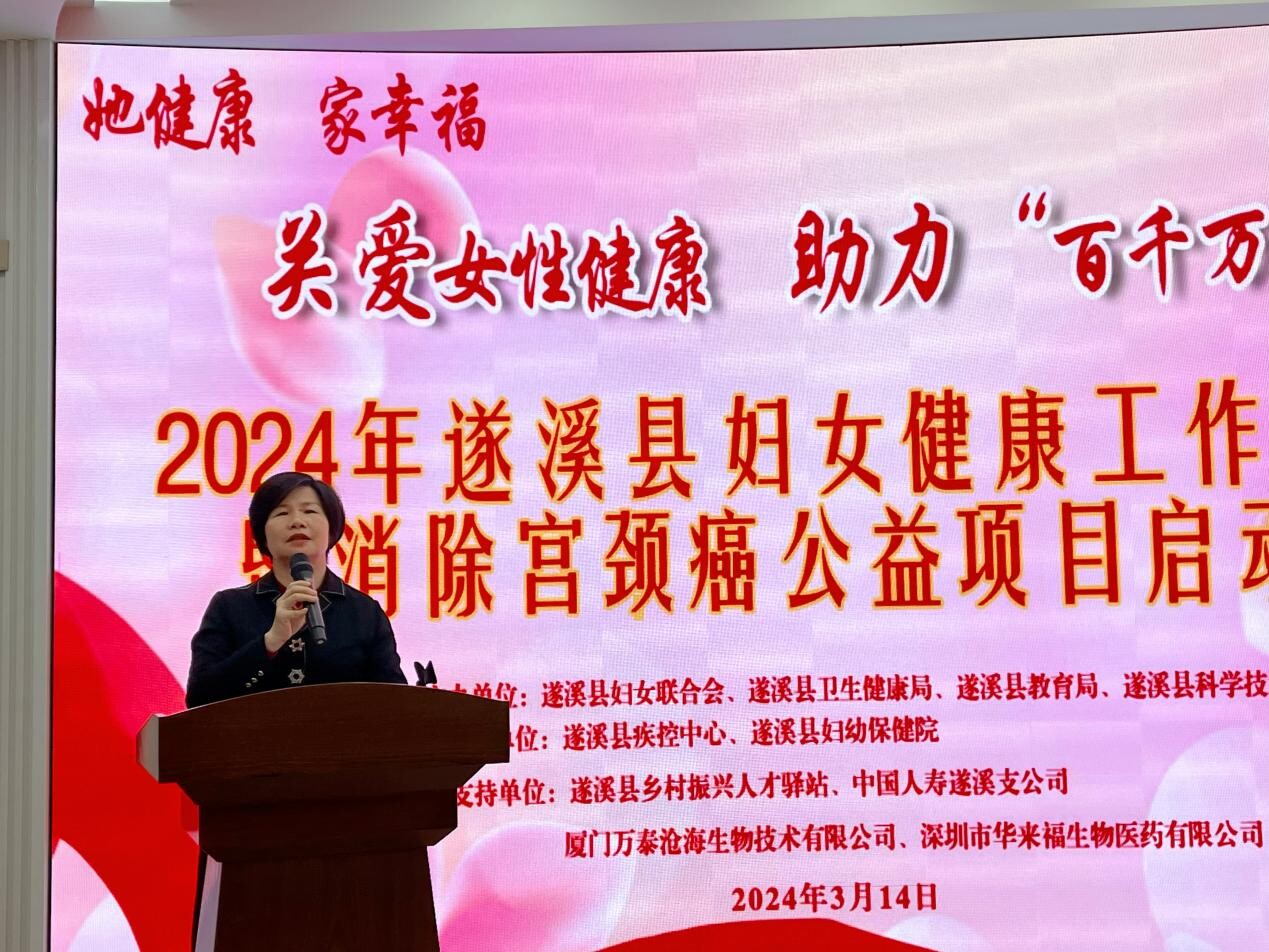 县妇联党组书记、主席王月美对2024年遂溪县妇女健康工作及消除宫颈癌公益项目实施作具体工作部署,提出要从重点人群、重点区域着手,整合女性大讲坛、文化科技卫生“三下乡”、妇女民生座谈会、健康科普大课堂、家长学校等各类资源及平台,线下线上同步开展宣教活动,全方位推进宫颈癌、乳腺癌和性传染疾病等女性重大疾病的科普宣教工作,多渠道、多形式关爱女性健康,推进乡村振兴巾帼行动有关举措落地落实,促进家庭幸福、社会和谐。