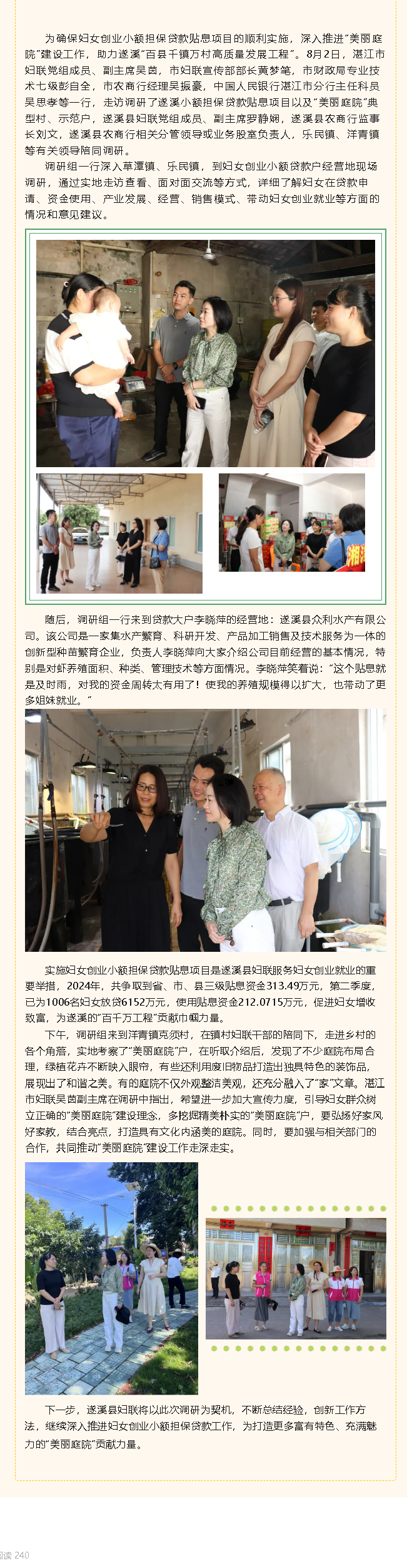 湛江市妇联率队到遂溪县调研妇女创业小额贷款和“美丽庭院”建设工作