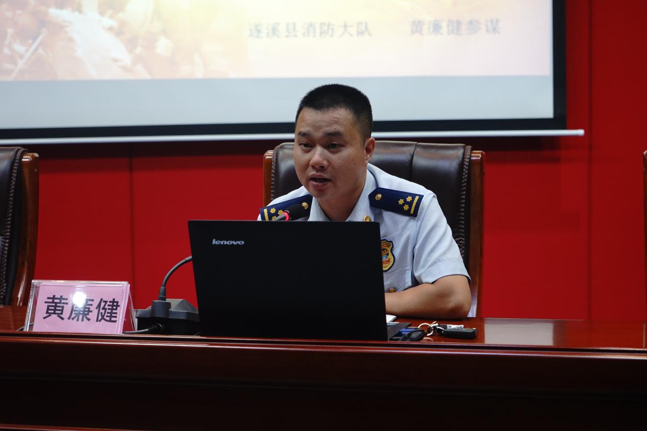 县消防大队黄廉健参谋作消防安全培训讲座,对常用的消防器材、消防设施的特点、性能、使用方法、日常检修等作了讲解,深入浅出,理论性和操作性强。