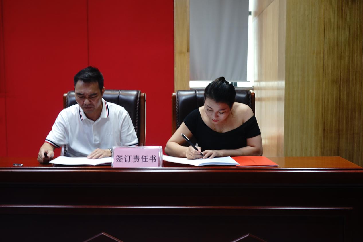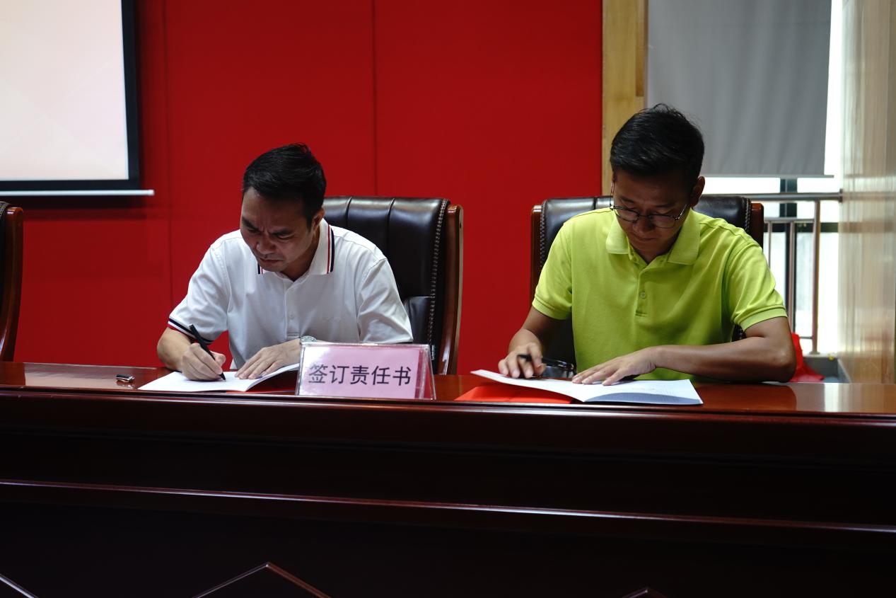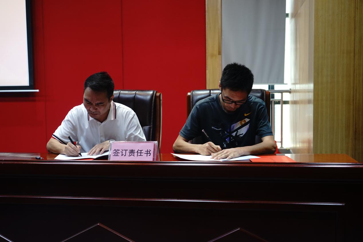 遂溪县文广旅体局党组书记、局长余良同志和各文广旅体行业、局内设股室签订《遂溪县文化广电旅游体育行业消防工作目标责任书》及《遂溪县文化广电旅游体育行业2019年安全生产责任书》(签约代表:孔子文化城、银塔大酒店、醉域量贩娱乐城)。