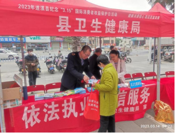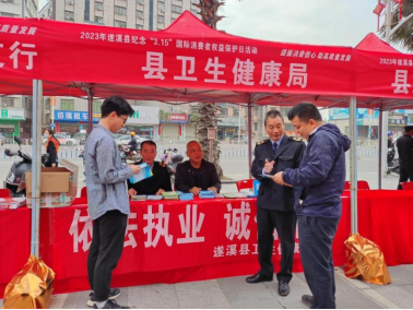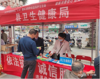 为切实维护消费者合法权益,确保人民群众的身体健康,提高广大消费者自我保护意识,促进生产经营者依法执业诚信服务,进一步优化营商环境,提高服务质量。2023年3月14日至15日,遂溪县卫生健康局与县卫生监督所以“3·15”消费者权益日宣传活动为契机,联合开展了以“依法执业 诚信服务”为主题的宣传活动。