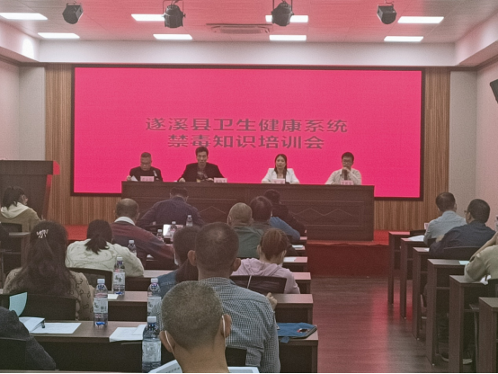 为进一步增强全县卫生健康系统识毒、防毒、拒毒、禁毒意识和能力,2023年3月16日,遂溪县卫生健康局组织全县卫生健康系统召开禁毒知识培训会,局全体干部职工和各医疗卫生单位主要领导参加培训。