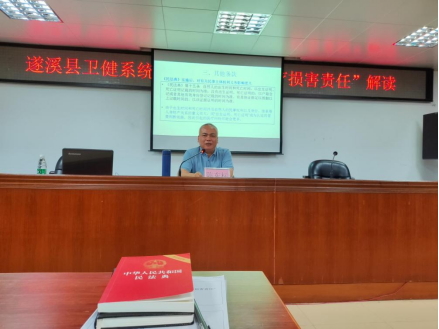为贯彻落实“八五”普法规划,提高全体卫生健康系统干部职工运用民法典维护人民权益、化解矛盾纠纷、促进社会和谐稳定的能力和水平。围绕“美好生活〃民法典相伴”主题,5月18日上午,我局组织全体干部职工在局六楼会议室开展了《民法典》专题学习培训活动,本次培训由县卫生健康局分管领导党组成员、副局长陈东标带头学习《民法典》“医疗损害责任”篇。