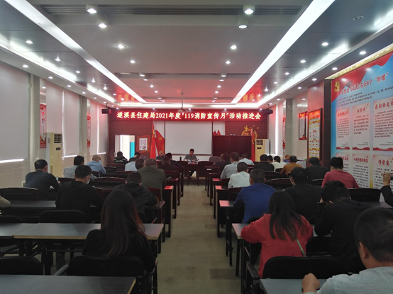 11月11日下午,县住建局在局六楼会议室召开县住建局2021年度“119消防宣传月”活动推进会。会议由舒驱同志主持,各项目建设、施工、监理主体责任人参加会议。