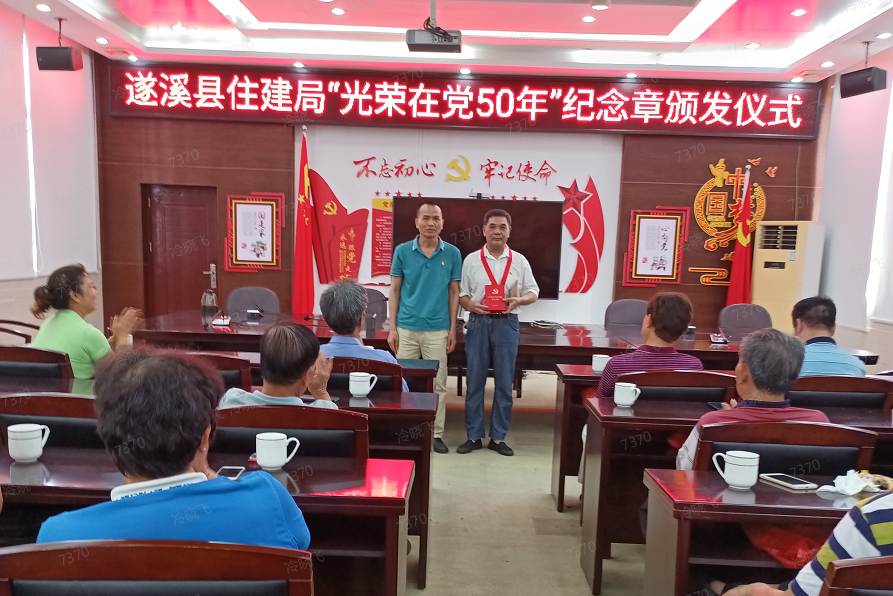 在建党101周年之际,6月30日,遂溪县住房和城乡建设局在六楼会议室举行“光荣在党50年”纪念章颁发仪式,陈光时副局长主持颁发仪式,退休老党员参加仪式。