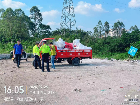2024年9月26日下午,遂溪县住房和城乡建设局联合遂溪县城市管理和综合执法局、遂溪县公安局、遂溪县交通运输局、遂城街道办事处开展建筑垃圾联合执法专项行动,对遂溪大道、207国道(沙坡高速路口至县城路段)进行巡查及蹲守,对路面建筑垃圾运输车辆、砂石运输车辆及肆意堆放、倾倒建筑垃圾行为进行执法检查查处。