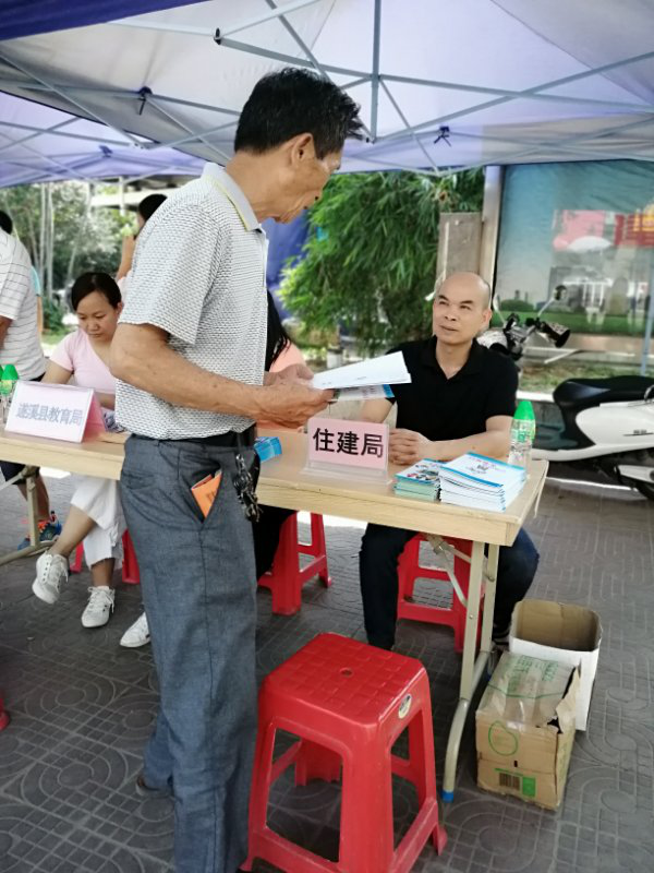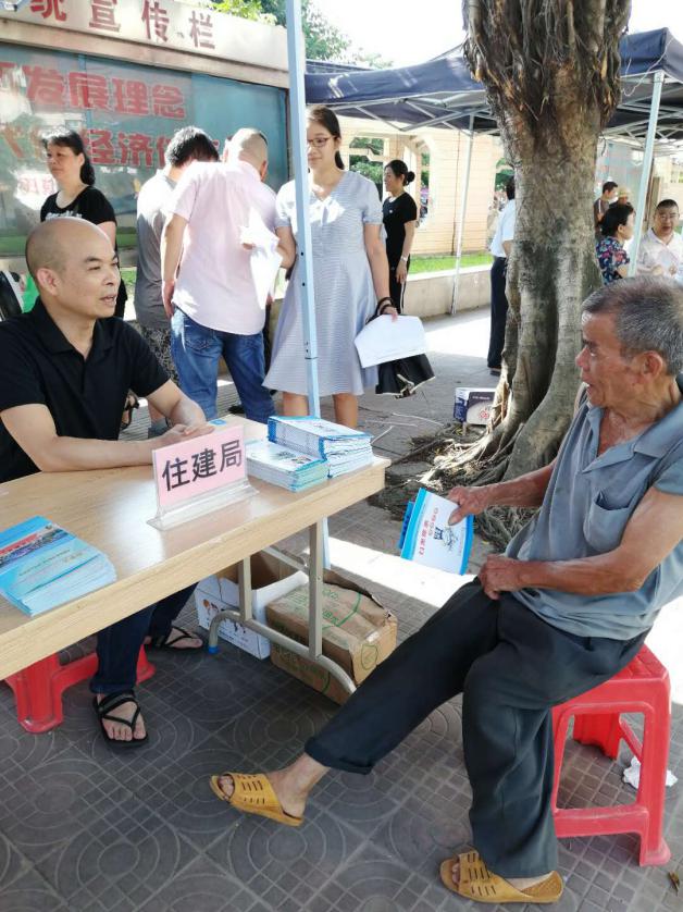 县住建局组织广大职工干部在全丰中央广场摆摊宣传扫黑除恶、创文、生活垃圾分类处理、建筑施工、燃气安全等方面法律法规宣传和接受群众咨询,配合县创文办、文明办、残联、生态环境局、应急局等单位开展“助残一条街”、“6.5世界环境日”、“安全生产月”宣传活动。县住建局依托摊位,以资料发放形式向民众普及扫黑除恶十类重点打击对象、“26问”、创建广东省文明城市、建筑施工安全、燃气安全等知识,服务民众、寓教于乐,现场服务群众2500人左右,现场发放资料约3500份。通过与市民互动,活跃了气氛,赢得市民积极参与和广泛好评。