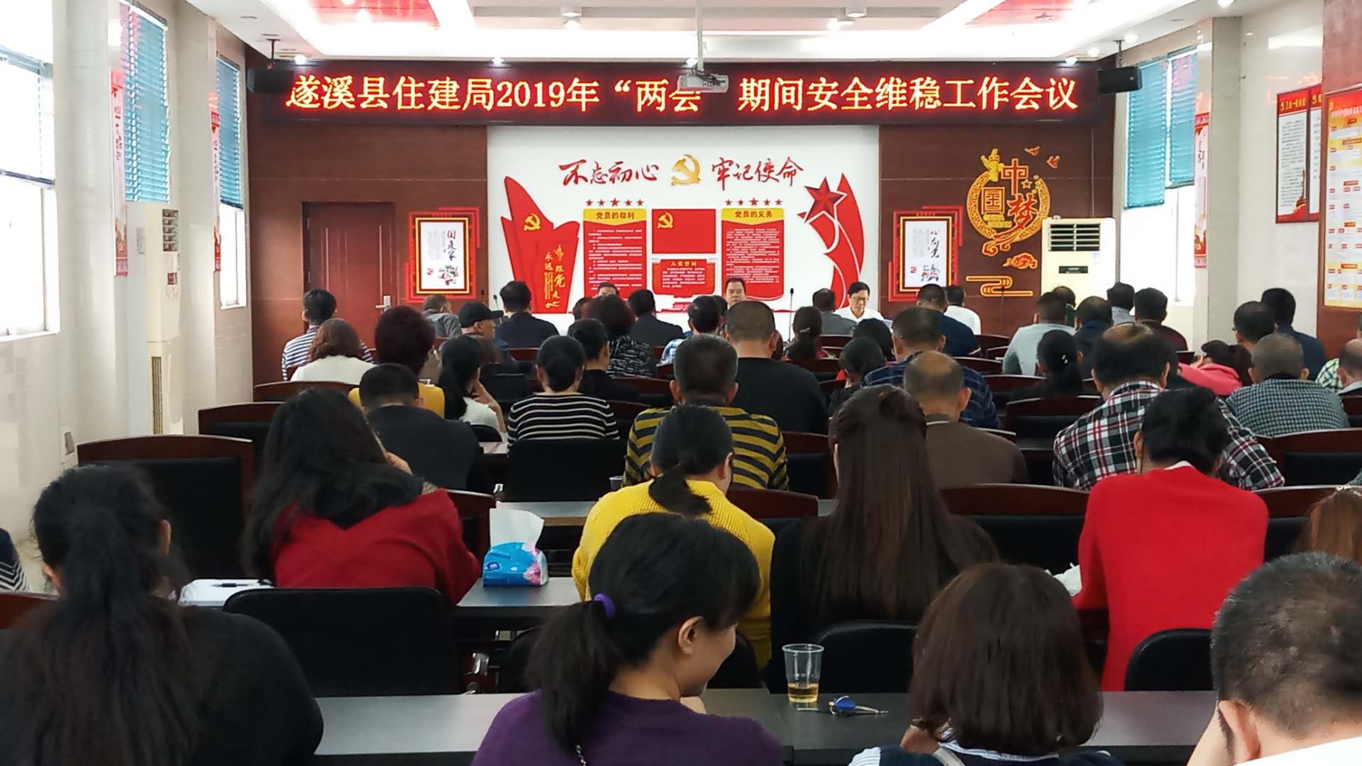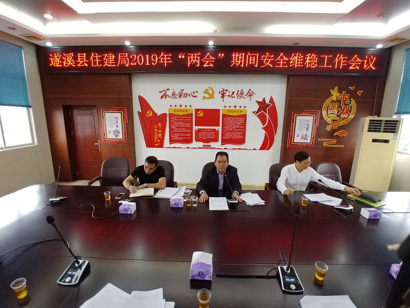 2019年3月14日,王永龙局长在我局六楼召开遂溪县住建局2019年“两会 ” 期间安全维稳工作会议,要求我局各部门、各镇规划办、各在建工地学习贯彻习近平总书记重要讲话精神,落实社会主义核心价值观;进一步推进余庆创书记讲话中谈及我县规划建设项目,高质量完成我县城市扩容提质,加快机构改革步伐等;严格做好安全生产工作,及时排除安全隐患,对可能引起群众集体事件的事项及时扼杀在萌芽状态,共150多人出席了会议。