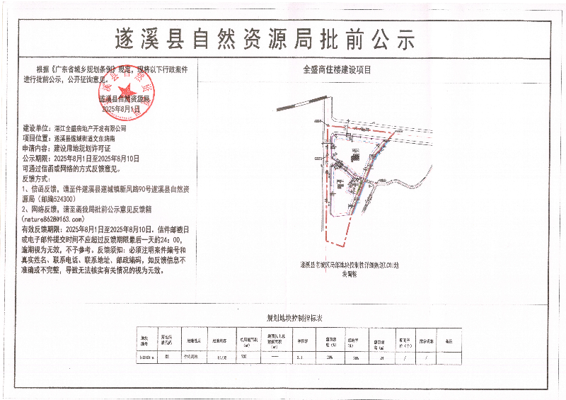 湛江市全盛房地产开发有限公司全盛商住楼建设用地规划许可证批前公示