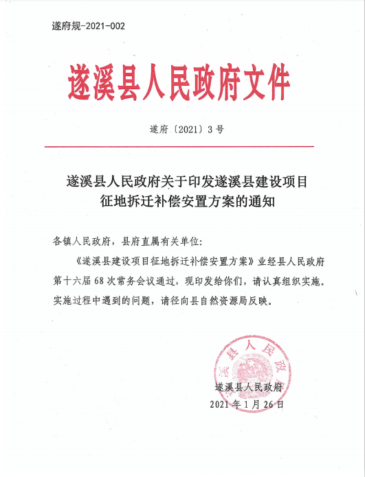 附件1:遂府规-2021-001遂溪县人民政府关于印发遂溪县建设项目征地拆迁补偿安置方案的通知(遂府〔2021〕3号).pdf