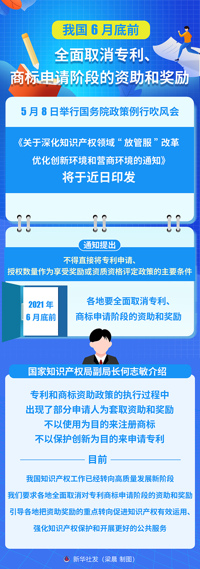 图表:我国6月底前全面取消专利、商标申请阶段的资助和奖励