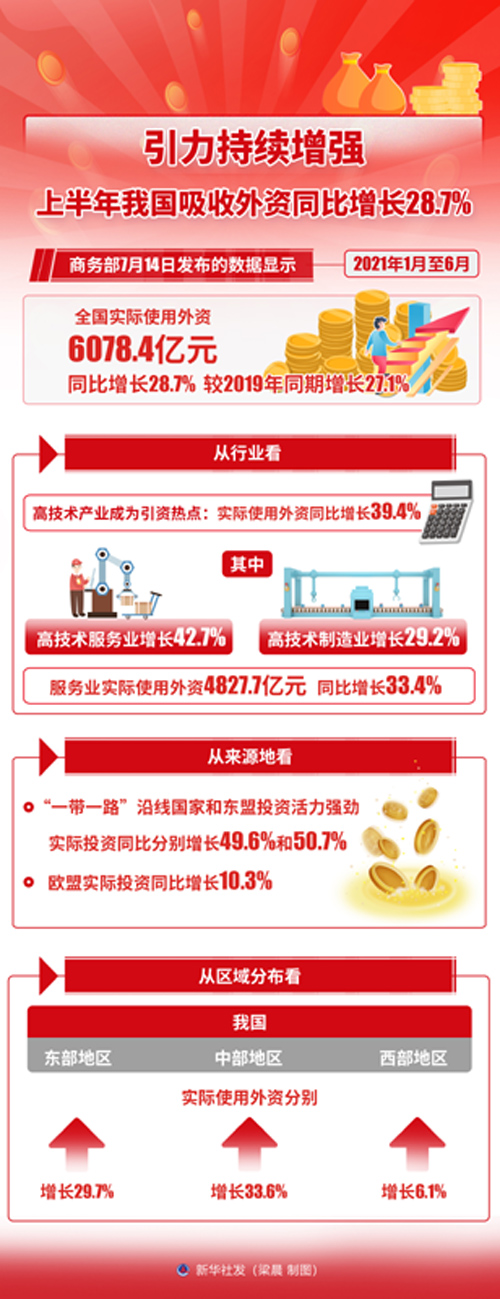 图表:引力持续增强 上半年我国吸收外资同比增长28.7%
