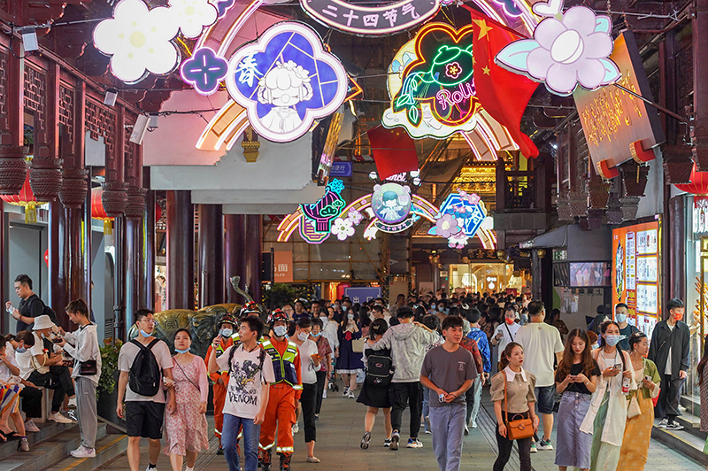 10月2日,人们在上海豫园游玩。新华社记者 王翔 摄