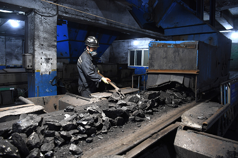 10月20日,安徽省宿州市钱营孜煤矿工人在筛分电煤。新华社记者 韩旭 摄