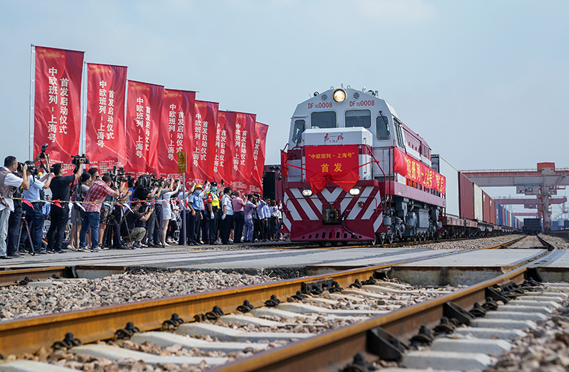 9月28日,“上海号”中欧班列从上海首发,驶向德国汉堡。新华社记者 丁汀 摄