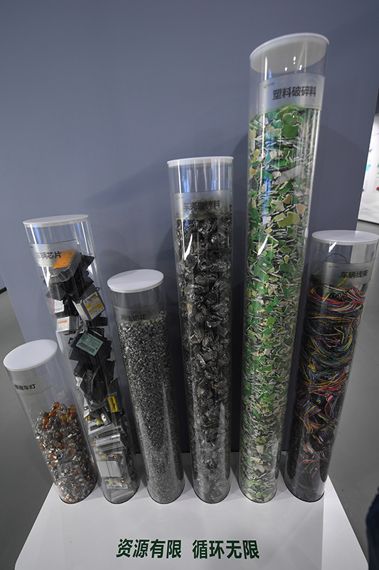 这是在湖州市吴兴区东林镇一家机动车回收拆解企业拍摄的拆解车辆得到的可循环利用的材料(11月9日摄)。